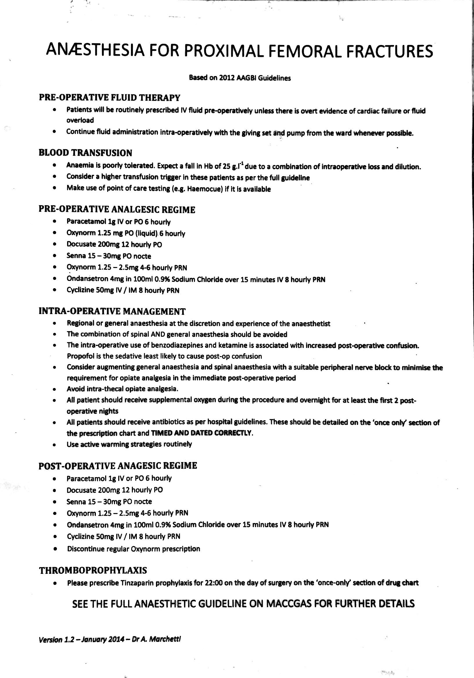 Anaesthesia for proximal femoral fractures